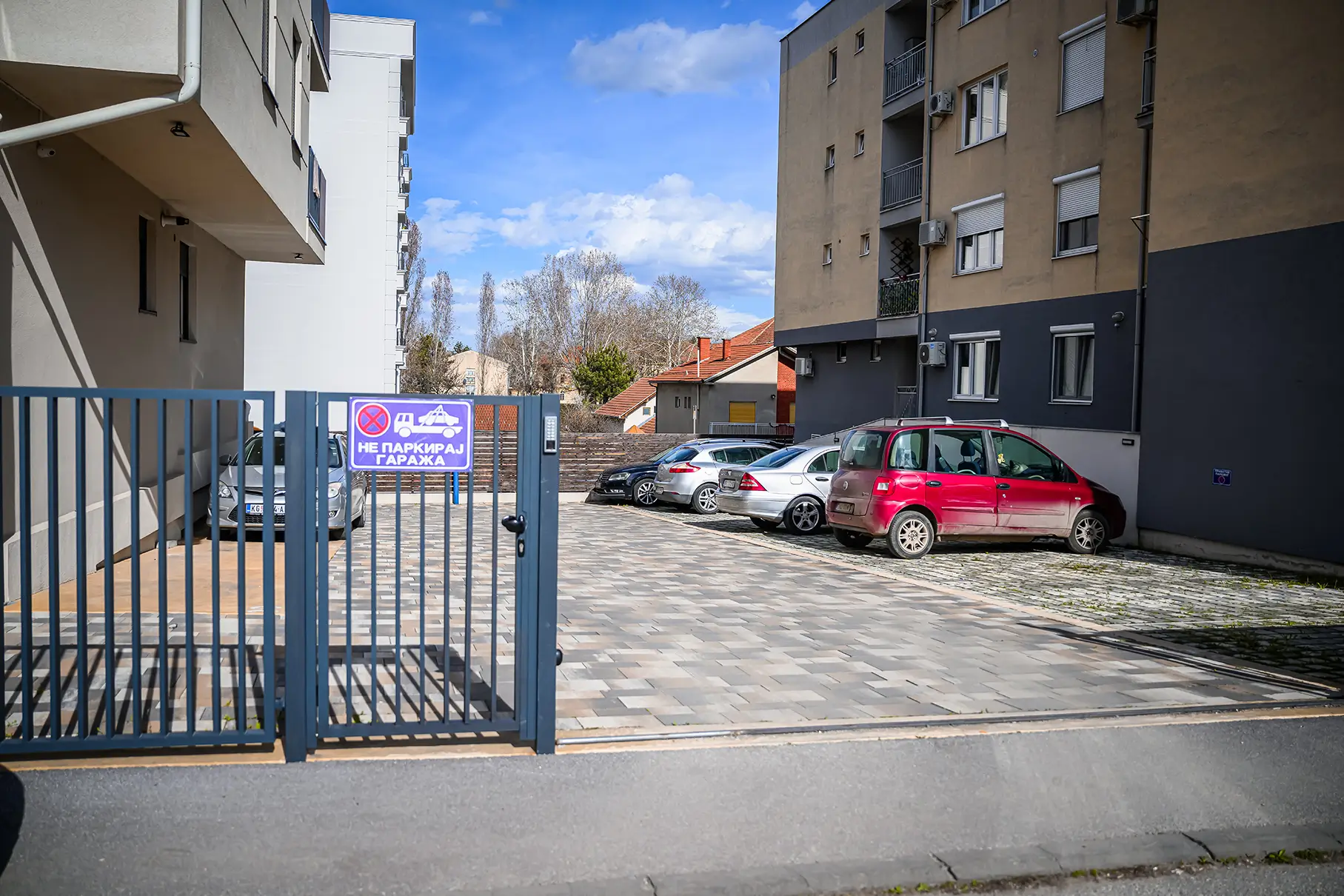Objekat ukupno poseduje 25 parking i garažnih mesta, predviđenih za stanare i posetioce, u skladu sa propisanim dimenzijama i normativima u Srbiji.