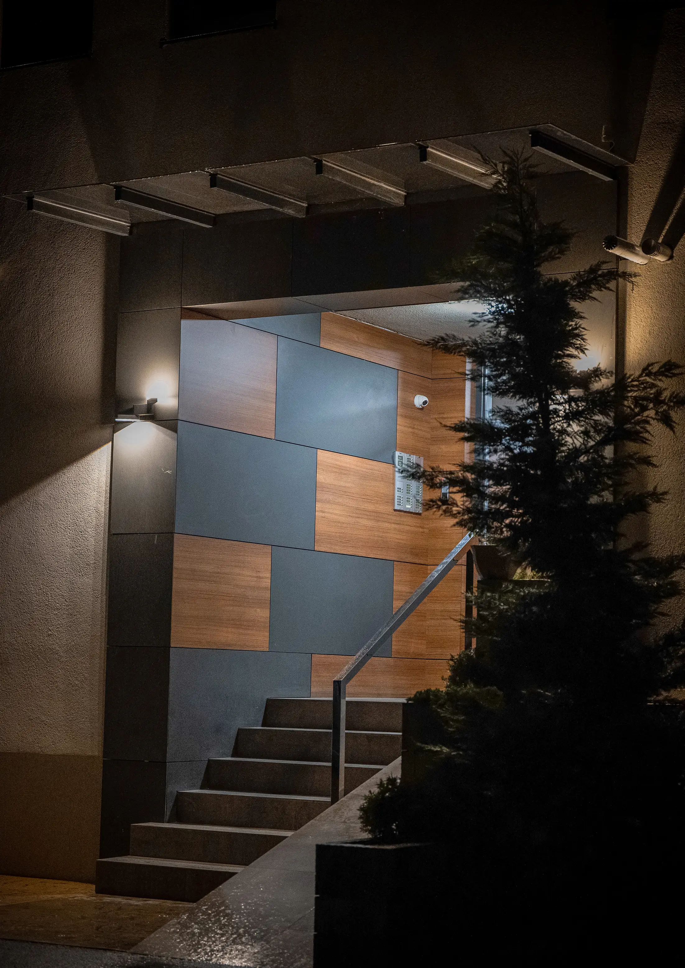 Savremeni sistemi bezbednosti uključuju video-nadzor, interfon i grejače na ulazima i olucima koji sprečavaju zamrzavanje tokom zime.