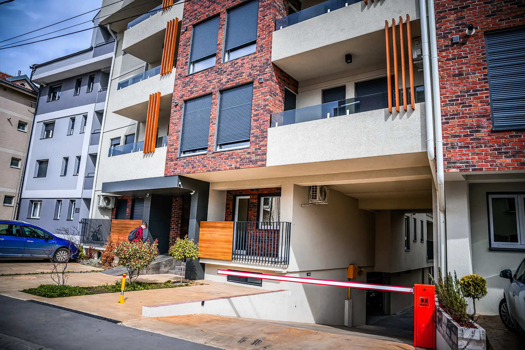 Objekat ukupno poseduje 14 parking garažnih mesta, kao i dovoljan broj parking mesta na parceli, predviđenih za stanare i posetioce, u skladu sa propisanim dimenzijama i normativima u Srbiji.